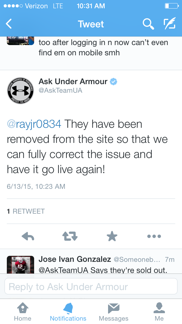 I’m not totally sad I didn’t get them bc I didn’t love the colorway itself but the whole crashed website surprised me because I’ve never had an issue getting any UA / Curry shoe, not even the Dubnation which I love to death. I actually checked out on the UA site in under a minute.