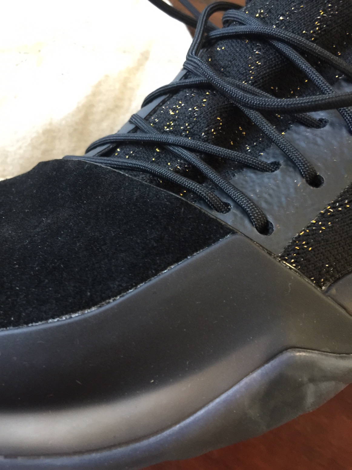 I heard Harden complains his toes get stepped on a lot which is why they added that leather toe cap. I guess the suede in this colorway doesn’t help with that as much but I suppose the ones he uses on court have a stiffer material there to help with that problem.