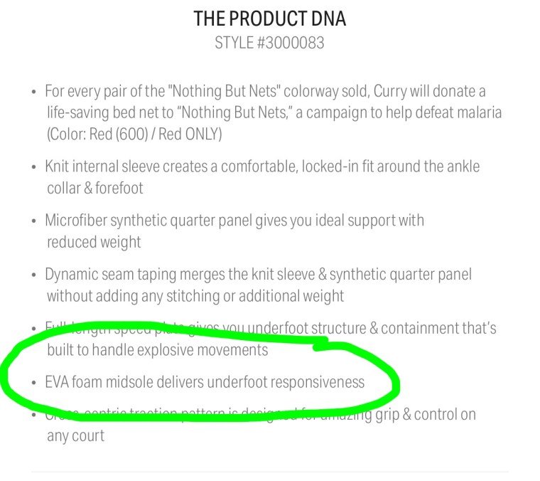 In my review of the Mid, I noted that the designer Kort Neumann stated that the tooling was EVA which meant the cushioning was EVA. Low and behold UA changed their description on the mid and have FINALLY come clean about the cushioning. Since I’m the only one who noticed this or bothered to state this, I’m going to take credit for the change. If you don’t care it’s EVA, great, I only called this out because I sniffed BS and I thought consumers should know. Am I disappointed in UA? Yes of course I am but it’s nothing new in the world of sneakers.