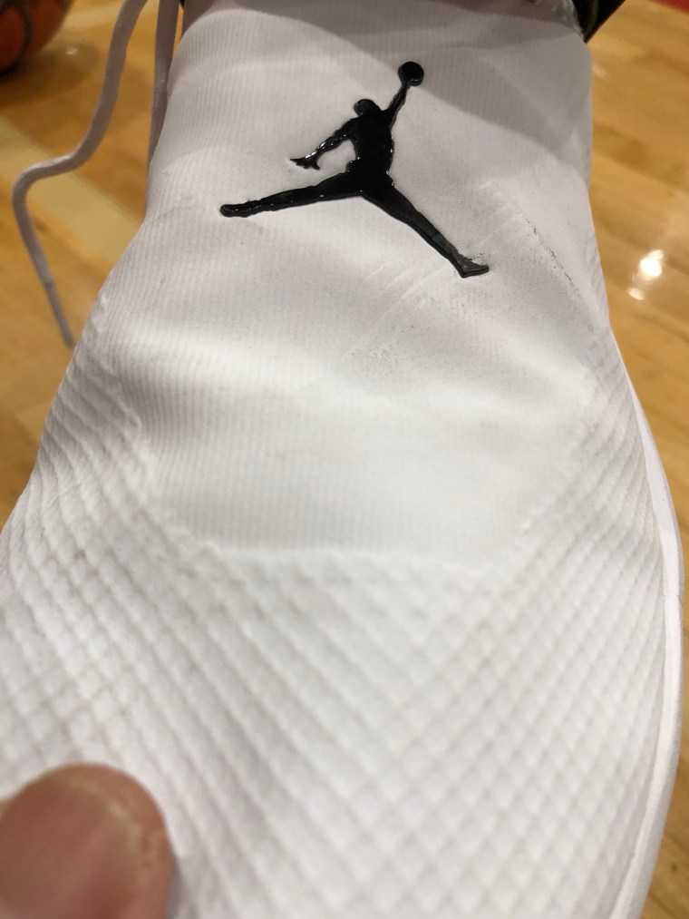 This shoe left me wanting, because conceptually it was strong and well-rounded but my experience wearing and playing in it was unexciting. I got some PEs, one pair was broken in already, one was slightly worn and one GR pair I got was DS. Out of the box, there is almost *no* step-in comfort. I am a heavier player (235 pounds on a good day) and so typically I can feel cushion, compression, etc. I felt next to nothing in these, only slightly better in the almost broken-in pair. The broken in pair (and the second one I eventually broke in) felt OK but again not what you think of *full length Zoom*. I actually though the much maligned React Foam from the SF2017 and HD2017 felt better once it was broken in, though it was also not great. That’s the first issue. From there, they are stiff, very stiff. This is a guard’s shoe? It was the stiffest shoe I have worn since the Hyperposite 2 if not the first Hyperposite. Not bad for me as a big man–I appreciated the north/south ride and outstanding containment–but I don’t get this as a point guard’s shoe, even a powerful one like Russ. It does ride low, which is nice, I guess, but I wouldn’t say it had great court feel or fluidity. The shoe is heavy, breathes poorly and doesn’t really offer premium materials that you might think would offset those characteristics. The heel counter also started off stiff but eventually loosened up a little.